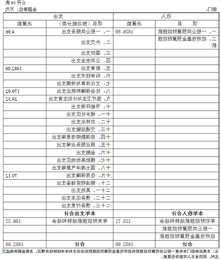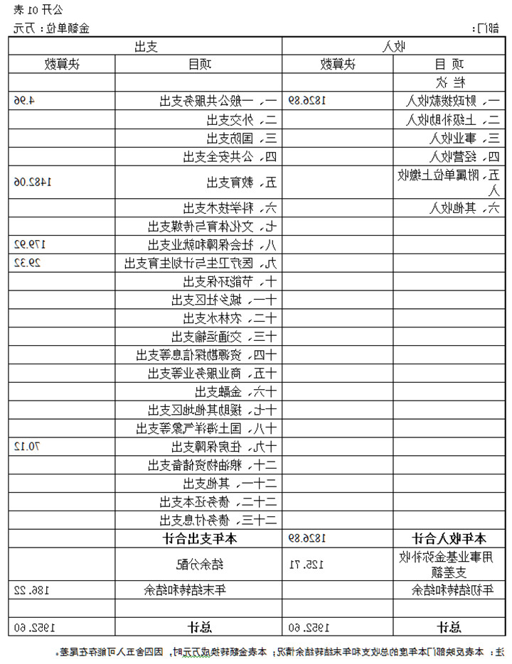 收入决算表