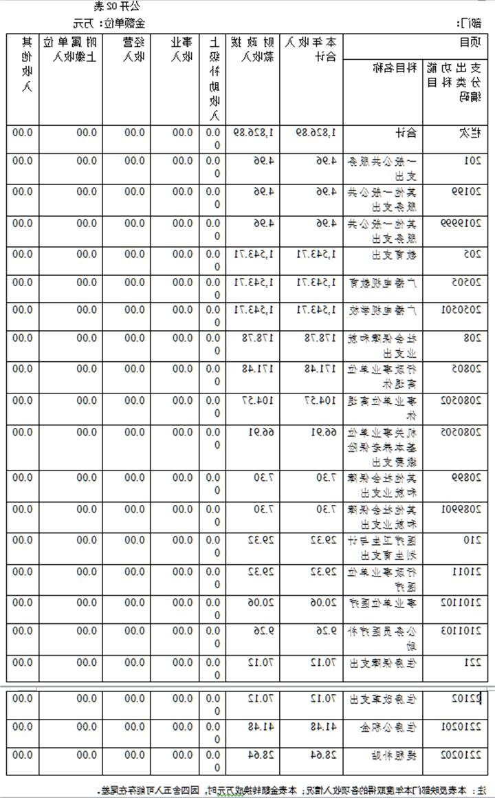 1.一般公共服务(类)财政事务(款)行政运行(项)。年初预算为4.96万元,支出决算为4.96万元,完成年初预算的100%,决算数等于预算数。